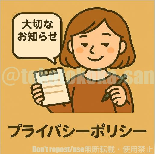 当ブログ「やる気なしでも日々は進む。-後回し癖と仲良く暮らす、トコトコ母さんの記録-」(以下「当サイト」)では、訪問者様のプライバシー保護を重要視しております。以下に、当サイトで取得する情報とその利用目的について記載いたします。